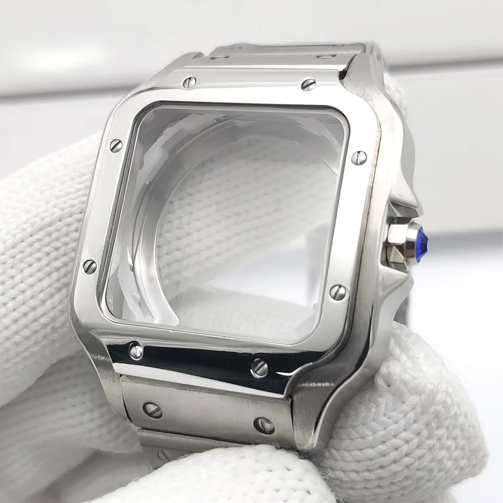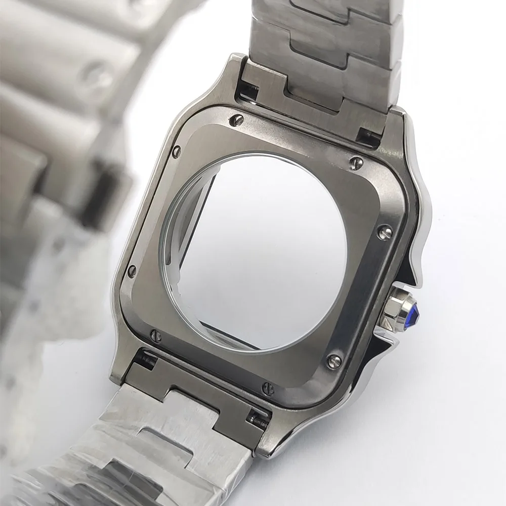 Square Watch Case High quality 38mm NH35 case 316L polished stainless steel case kit for Cartier Santos square case fits NH35/36/ 4R35/36 movement