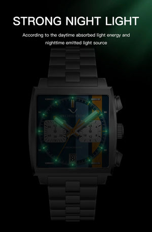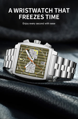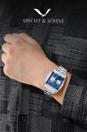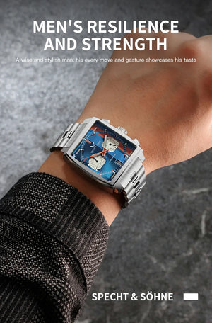 This Quartz Square Watch from Specht & Söhne blends bold geometry with luxury sport style. Powered by a reliable Japan VK64 chronograph movement, it features a solid 316L stainless steel square case, luminous dial, and versatile strap options. Designed for daily wear, it delivers precision timing, modern aesthetics, and premium build quality—an ideal men’s watch for business, casual, or gifting.