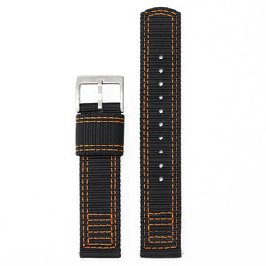 Leather Accented Canvas Nylon Watch Band 20mm/22mm
