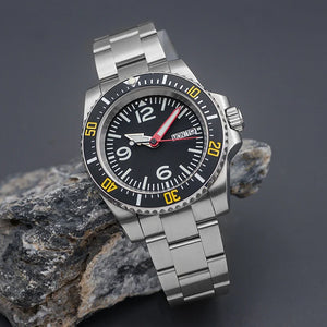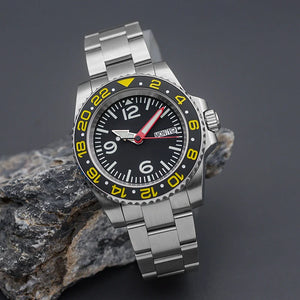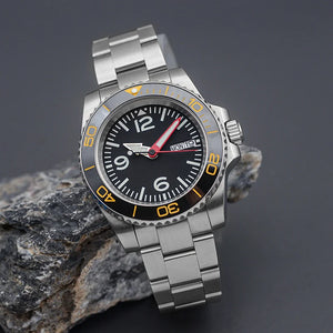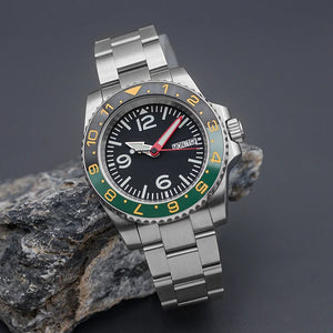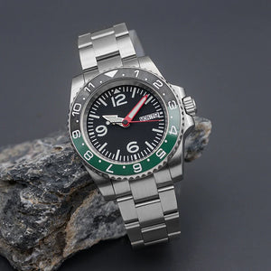 Discover submariner, sea dweller and yacht master Watch, featuring the NH36 Automatic Mechanical Movement for precise timekeeping. This luxury sports watch boasts a 41mm stainless steel case with a thickness of 13mm and a 20mm lug size. The bezel is crafted from ceramic, measuring 3830.51.0 mm. The dial features C3 Super Green Luminous hands and markers on a 28.5mm dial. The sapphire crystal glass ensures superior clarity and scratch resistance. With 100M (10ATM/10 Bar) water resistance, it's perfect for various activities. The watch has a screw-in lock crown at 3 o'clock and a sealed waterproof back cover. All watches are logo-free, offering a clean and sophisticated look.