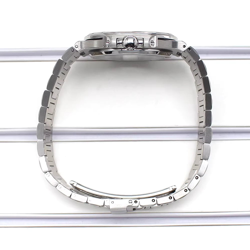 Elevate your watch modding projects with this Miyota 9015 watch case designed for the Miyota 9015 movement. Featuring a sophisticated Nautilus-inspired aesthetic, this ultra-slim 10mm profile delivers a refined wrist presence without bulk. The robust 10ATM water resistance rating ensures reliable performance in daily wear and water activities, while the scratch-resistant sapphire crystal protects your dial with optical clarity. Built for discerning enthusiasts who demand both form