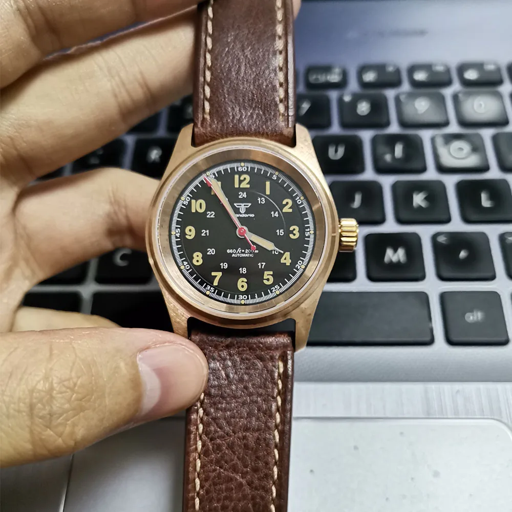 Tandorio 36mm Bronze Pilot TD130 NH35/PT5000 Mechanical Watch 200m Water Resistant Sapphire