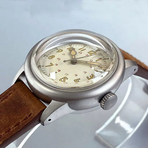 Experience precision and style with the Tandorio 36mm Military Watch TD135B Automatic Watch. Crafted with a stainless steel case and a premium leather strap, this timepiece features a sleek black cream dial and a durable sapphire crystal window. With 20ATM water resistance and a screw-down crown, it's perfect for underwater adventures. The NH35 automatic movement ensures reliable timekeeping, while the 36mm round case offers a classic yet modern look. Ideal for both casual and fashion wear.