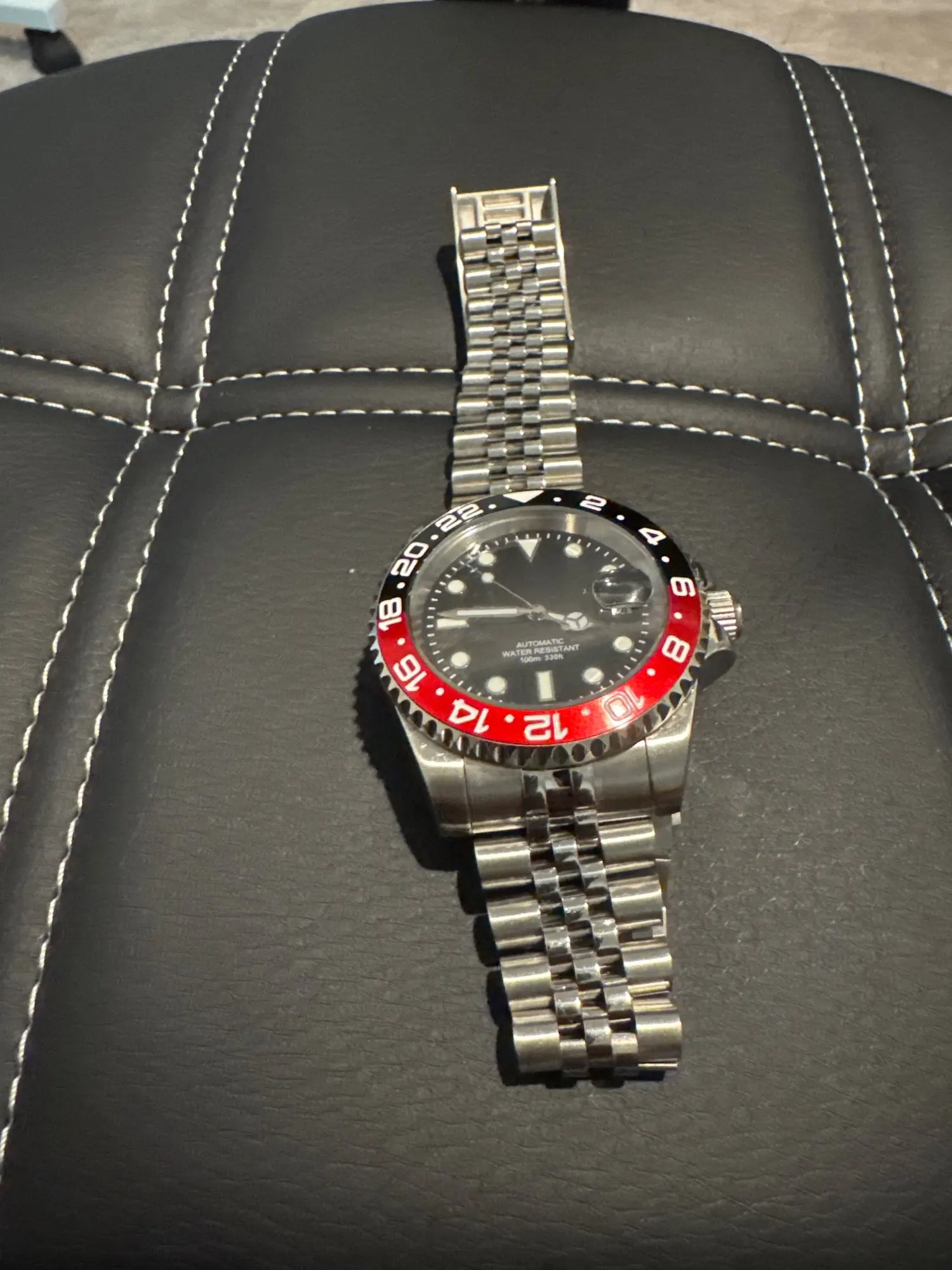 Expertly crafted with a Tandorio 40mm NH34 automatic movement, this sleek watch is a must-have for the modern man. The GMT function allows for dual time zone tracking while the black dial and sapphire crystal add a touch of sophistication. Complete with an auto date feature and your choice of jubilee or oyster bracelet, this watch is perfect for any occasion.