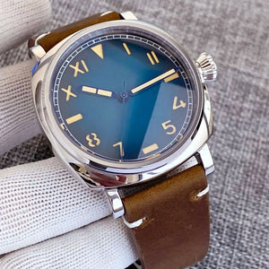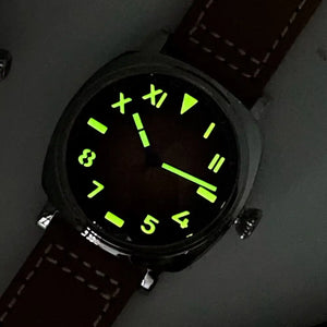 The Tandorio CUSN8 Bronze Radiomir TD113B California Sandwich Watch blends vintage Italian military aesthetics with modern precision and functionality. Featuring a striking California sandwich dial in coffee or black, this watch stands out as a timeless accessory for any occasion. Powered by the reliable Seiko NH35A or PT5000 automatic movement, it ensures exceptional performance with a 42-hour power reserve. Its robust design, crafted with solid 316L stainless steel or bronze, is complemented by AR-coated sapphire glass for added durability.
