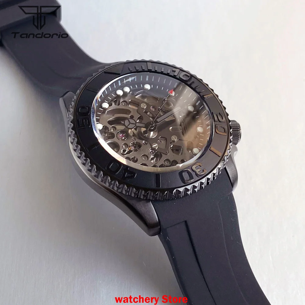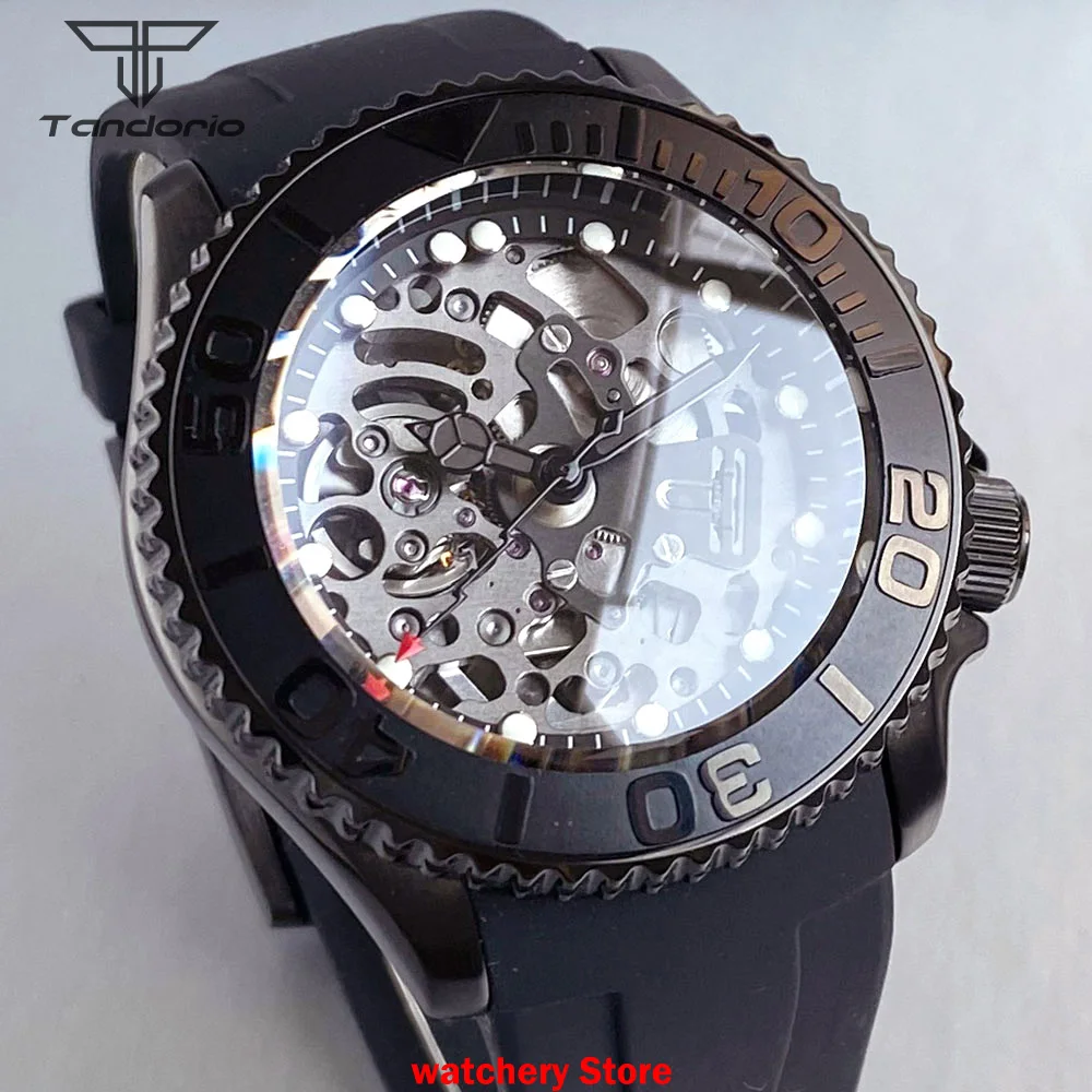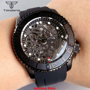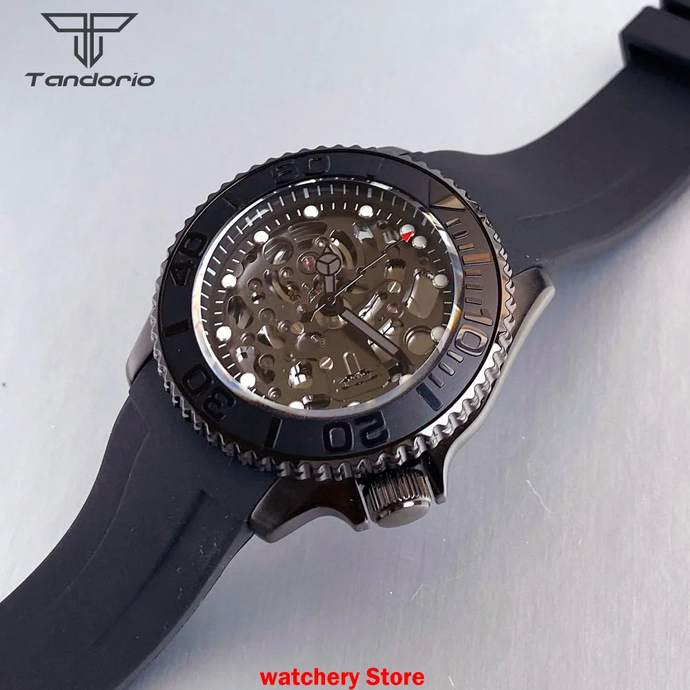 Skeleton SKX007 Black PVD Tandorio TD269S 41mm Japan NH72 Automatic Sapphire 200m Waterproof