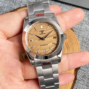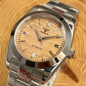 Experience the highest quality with the Tandorio Sand Dune watch. With a precise NH35 PT5000 mechanical movement and a sleek silver hand polish bezel, this timepiece is sure to impress. The 36mm or 39mm size options offer a comfortable fit, while the Glide Lock 904L bracelet ensures durability. Elevate your style with the Tandorio Sand Dune watch.