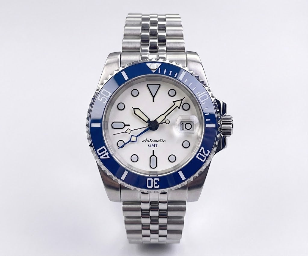 A modern GMT dive watch built for precision and versatility. Powered by the Seiko NH34A GMT movement, featuring a sapphire crystal, 120-click rotating bezel, and 20BAR water resistance. Solid construction and a bold “Bruce Wayne” pepsi-style design make it ideal for travel and daily wear.