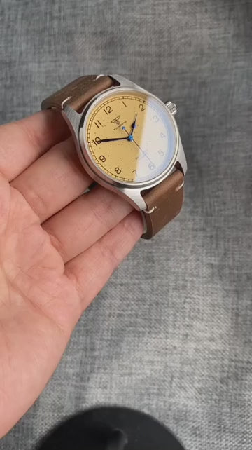 The Tandorio Vintage Pilot Watch is a durable and reliable timepiece for men. Equipped with a NH35A PT5000 automatic movement and sapphire glass, this 39mm watch is built to withstand depths of up to 200 meters. The yellow dial and luminous hands add a touch of vintage style while the leather strap ensures comfort and longevity.