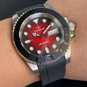 The Tandorio Yacht Master Watch TD269B is a must-have for any watch enthusiast. With its 40mm size, NH36A movement, and 200M water resistance, it is both stylish and functional. The luminous hands and markers, along with the sapphire crystal, make it perfect for any adventure on land or sea.