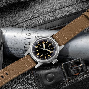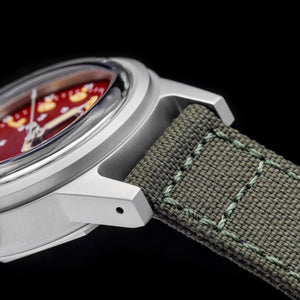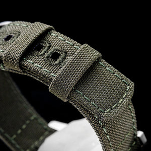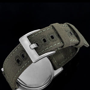 Discover the THORN SHY-043(G11), a stylish and durable mechanical wristwatch designed for men. This watch features the NH35A automatic mechanical movement, ensuring precise timekeeping. The 36mm stainless steel case, with a thickness of 13.5mm, is crafted from high-quality 316L stainless steel with a retro sandblasted finish. The dial features Arabic numeral markers and C3 super luminous hands for enhanced visibility in low light. The acrylic bubble mirror ensures superior clarity and durability. With a 10Bar (100m) waterproof rating, this watch is suitable for daily use and light water activities. The fabric strap, measuring 28cm in length and 18mm in width, is secured with a hook buckle for comfort and style.
