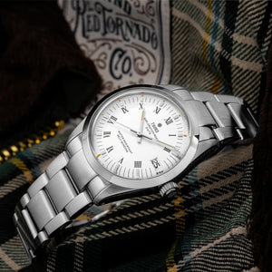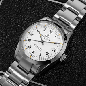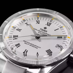 Experience precision engineering with the THORN T004 Men's Watch. Powered by the reliable PT5000 automatic movement, this mechanical timepiece pays homage to vintage design while incorporating modern technology. The domed sapphire crystal provides exceptional clarity and scratch resistance, while luminous markers ensure readability in all conditions. With 10Bar waterproof rating, this watch combines sophisticated aesthetics with practical durability for the discerning collector.
