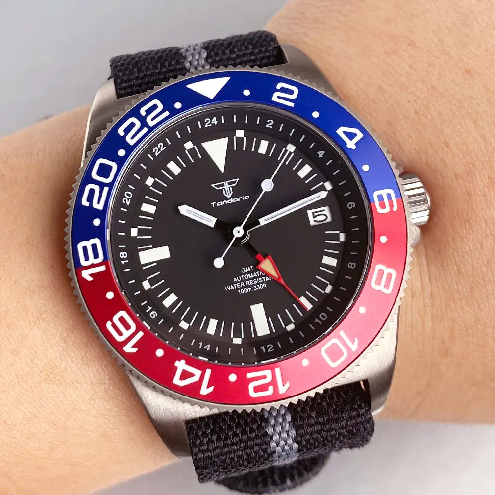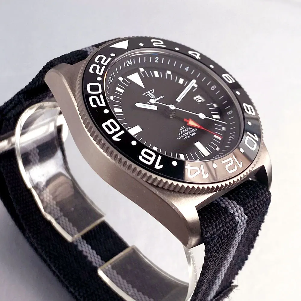 Titanium GMT Watch Tandorio TD015T 42mm Frog NH34 GMT Automatic Watch Luminous Sapphire 20Bar