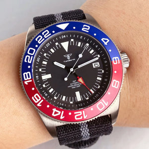 Experience precision, durability, and adventure-ready style with the Titanium GMT Watch Tandorio TD015T . Powered by the reliable NH34 GMT automatic movement, this timepiece allows you to track multiple time zones with ease. Crafted from lightweight yet robust titanium, it offers exceptional comfort and strength, while the sapphire crystal ensures lasting clarity. The green luminous markers and hands provide outstanding visibility in low light, and the 200M (20Bar) water resistance makes it ideal for diving and outdoor exploration.