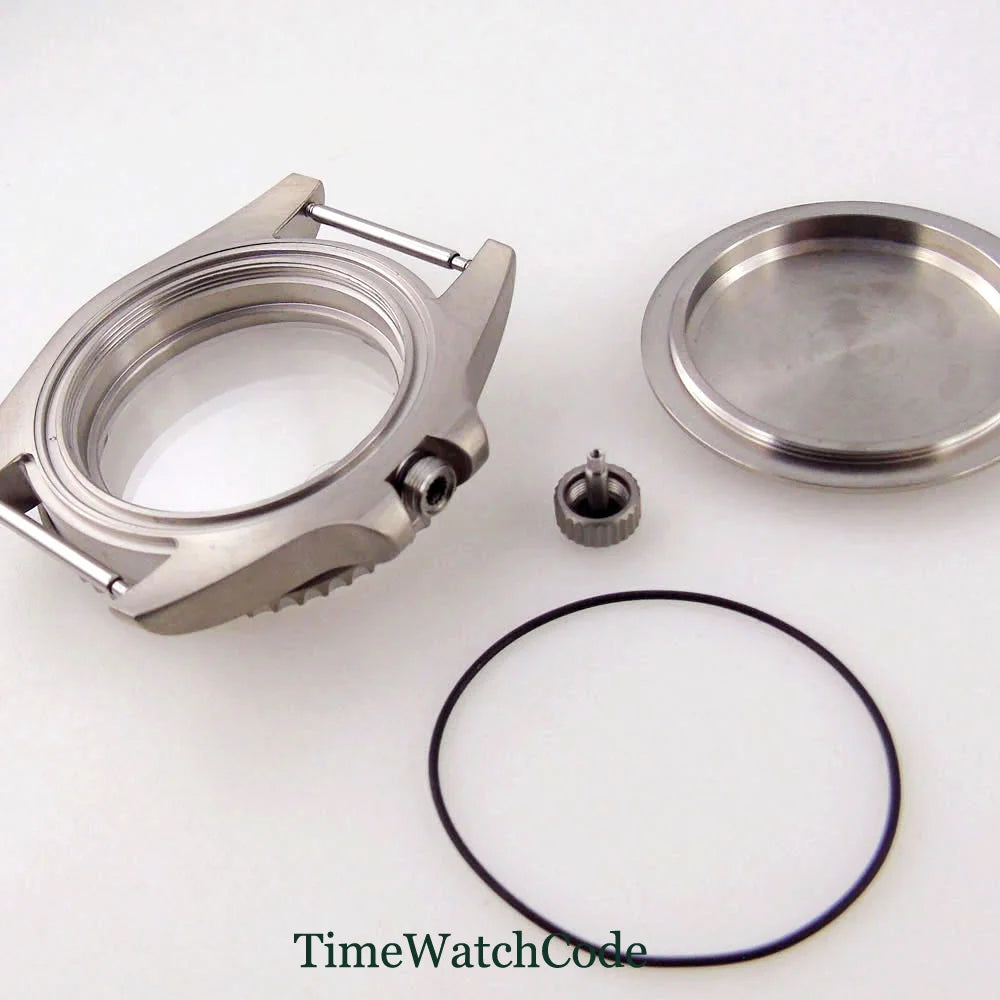 Crafted from durable titanium, this 40mm Sub Diver watch case offers exceptional corrosion resistance and lightweight comfort. Designed for compatibility with NH35, NH36, ETA2824, and PT5000 movements, it features a screw-in crown and sapphire crystal for enhanced water resistance up to 200 meters. Its antiallergic properties ensure comfortable wear while maintaining robust protection, making it an ideal foundation for a high-performance diving watch.