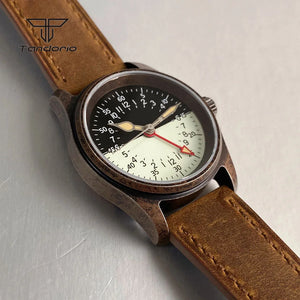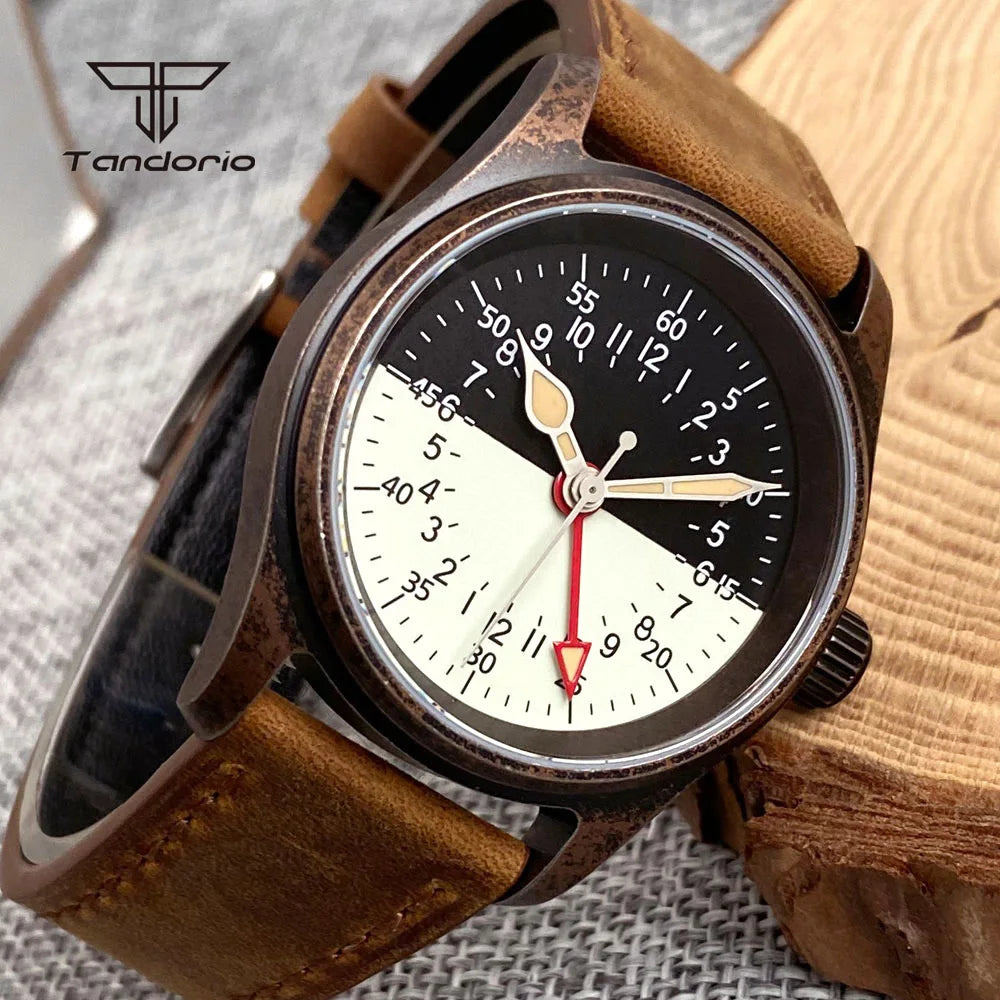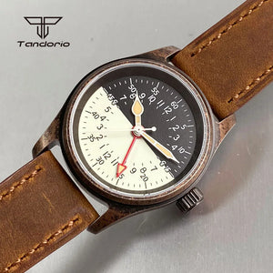 Vintage Pilot GMT Watch Tandorio TD166G 36mm Sapphire 20BAR Luminous Two Tone Dial Day Night