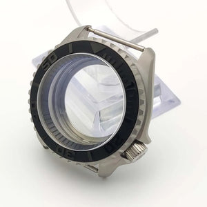 Precision-engineered 42MM Yacht Master case designed specifically for NH35/NH36 movements. Crafted from premium stainless steel with a scratch-resistant sapphire crystal, this case delivers exceptional durability and clarity. Compatible with SKX007 modifications, it offers watchmakers a professional-grade foundation for custom timepiece builds with superior water resistance and refined aesthetics.
