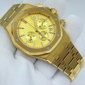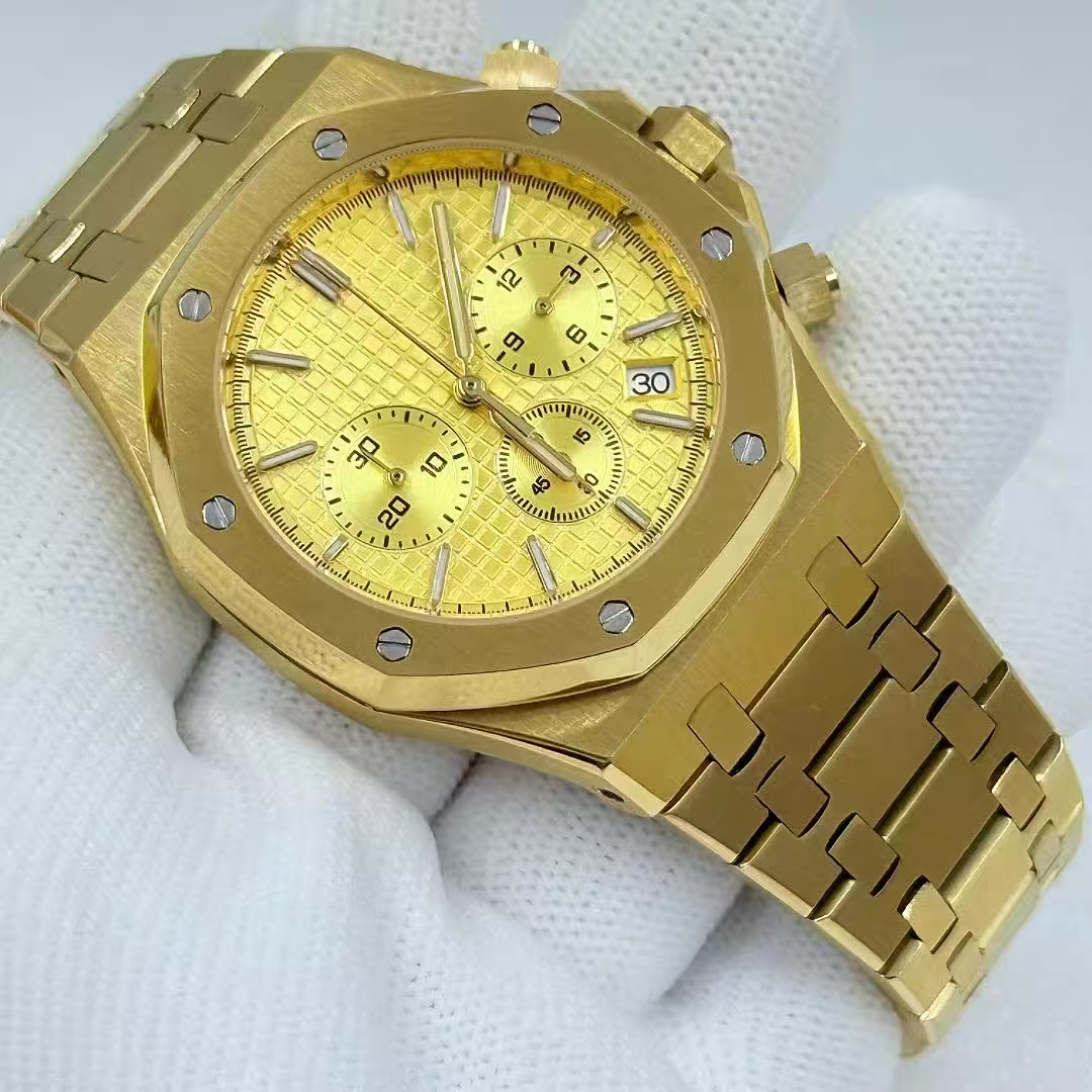 Yellow Gold Quartz Royal Oak Octagon Watch Customized LOGO Chronograph 41mm Japanese VK63 Movement Sapphire 3ATM
